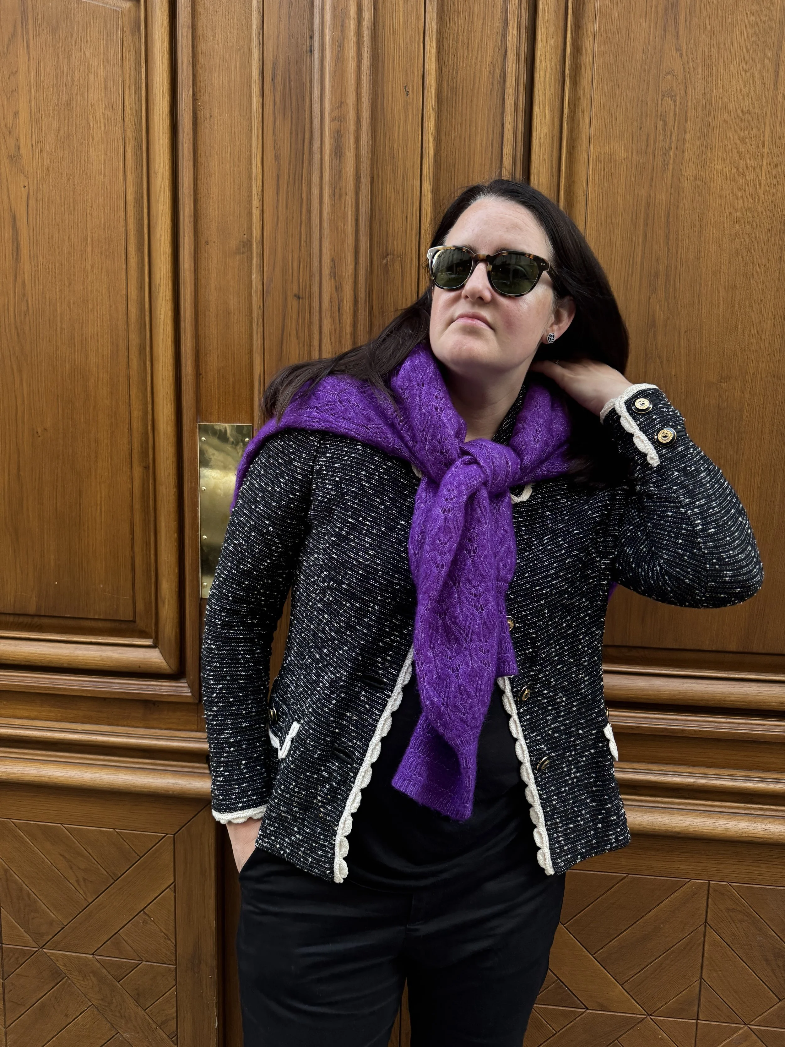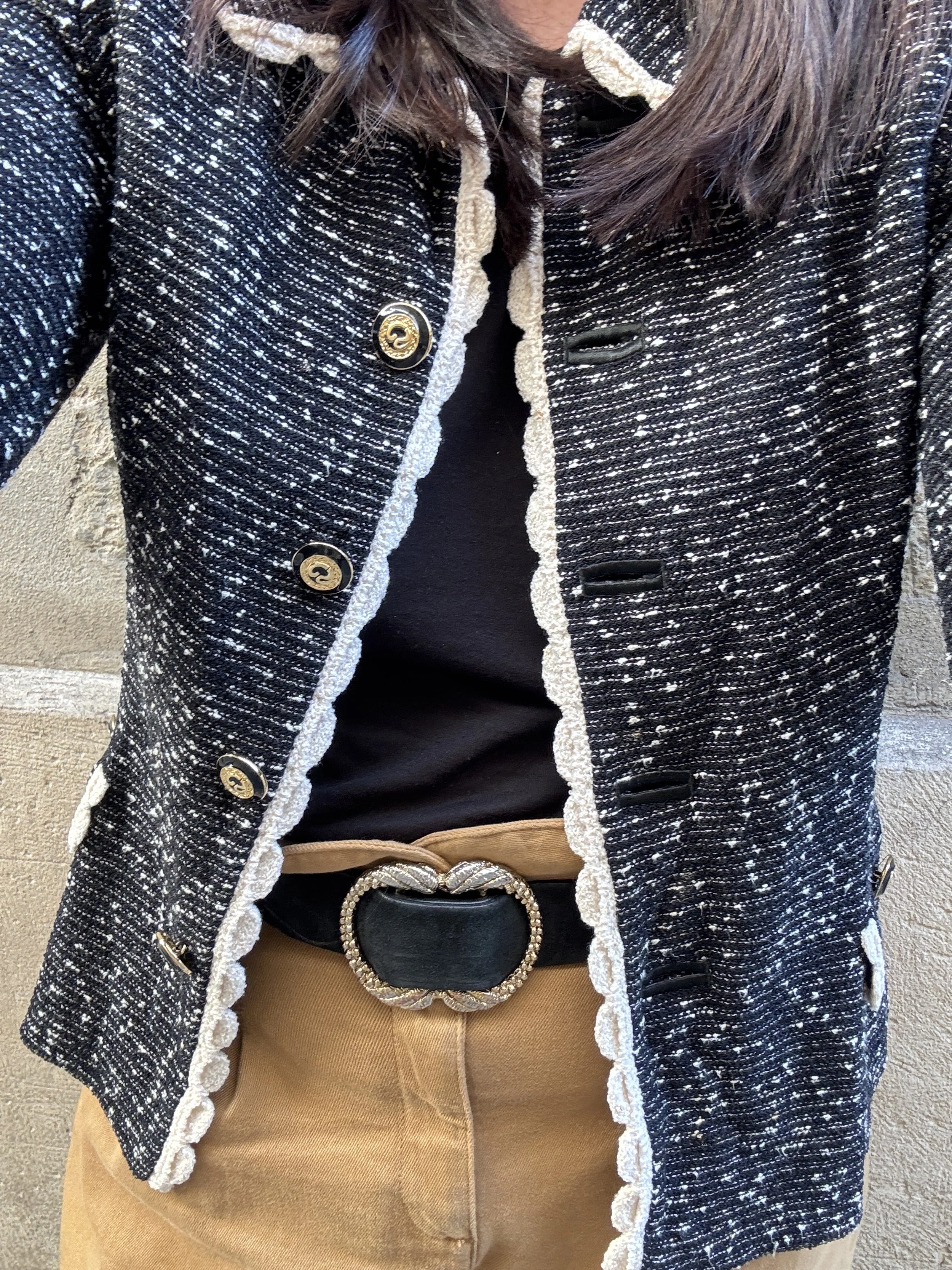This tried-and-true silhouette has been around for decades and can be worn easily - but styling can play a huge part. People can shy away from it as it can look like grandma cosplay or too “buttoned-up.” I will refrain from calling it a “classic” because everyone’s view of this word is different. My goal is to get you to maybe view this style in a different way. I have this great piece in my closet from my grandmother from traditional brand St. John - I knew I could reinvent this in a cool way! The quality is already there and especially with the older pieces - this was made in the USA with Italian fabric in the 1980’s. Here are three ways to style this seemingly “stuffy” jacket!