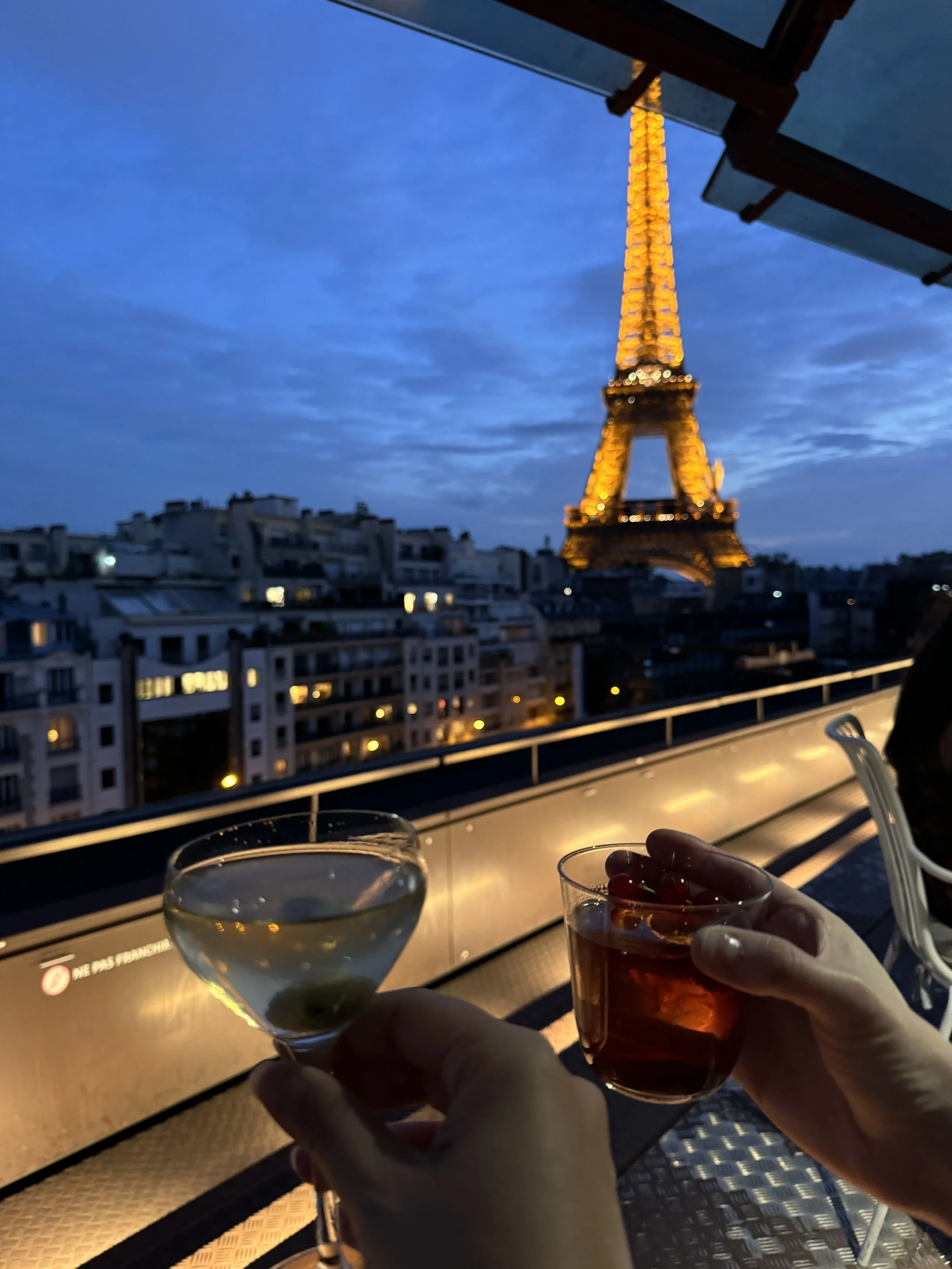 My absolute favorite view of the Eiffel Tower up close and personal! Bramble is the bar offshoot of the fine-dining restaurant Les Ombres, located on the top of the Musée Quai Branly. For my 40th birthday, my bff came to visit from Austin and having never been to Paris, requested a great Eiffel situation. I always ask visitors this - would you like an amazing view of the tower herself OR to be in it. She answered the former, and I figured out this was a great option and more unique in my opinion than Girafe, etc. We reserved an 8:30 slot to get at least one sparkle at 9pm in late August and it was perfect! The staff was a bit chaotic, but nice and the cocktails very different and strong enough for the price. They have small bites as well, that were nice. I would absolutely recommend this to someone visiting who doesn’t want to commit to an insane dinner or doesn’t have the time for that, either. Perfect for a post-Seine picnic or a pre late dinner drink with some ambiance.